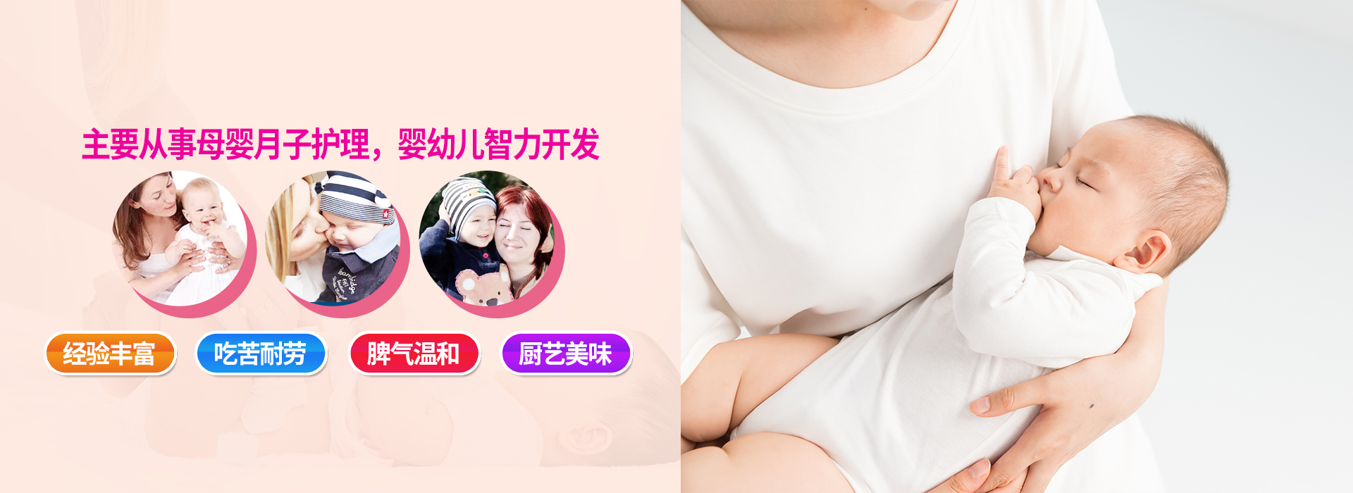 主要從事母嬰月子護理,嬰幼兒智力開發